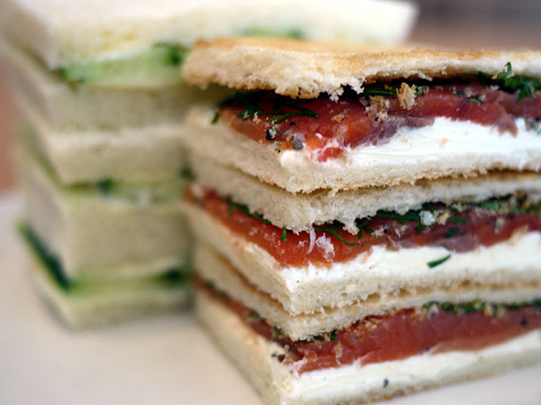 一つはスモークサーモンのサンドイッチと、もう一つはキューカンバ。