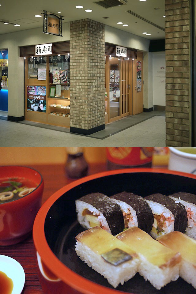 蕎麦一杯ではお腹がふくれずそれでテクッと移動して大阪鮨をつまんで食べる。