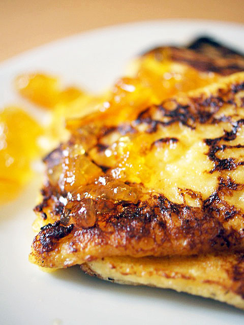 ほどよく焦げ目が両面ついたところでお皿に移しマーマレードを添えてハフっと味わう。