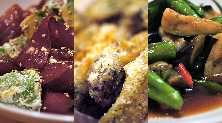 揚げた茄子と辛味を持ったチョリソを加えてフツフツ煮こんでソースとなした。