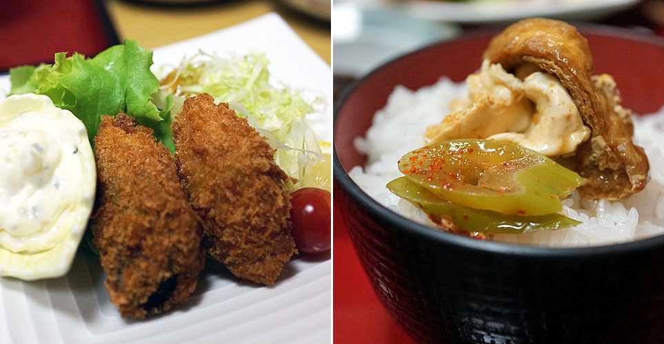 カキフライをセットにし、大エビの天ぷらをトッピングにして名古屋気分を謳歌する。