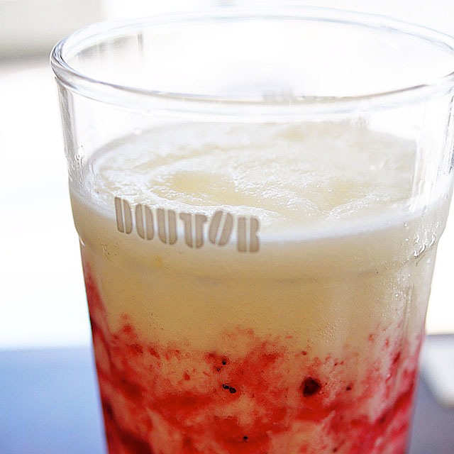 スッキリ、酸味がたのしいヨーグルト状の飲み物を、シャーベット状にしてチュチュっと吸い込む。