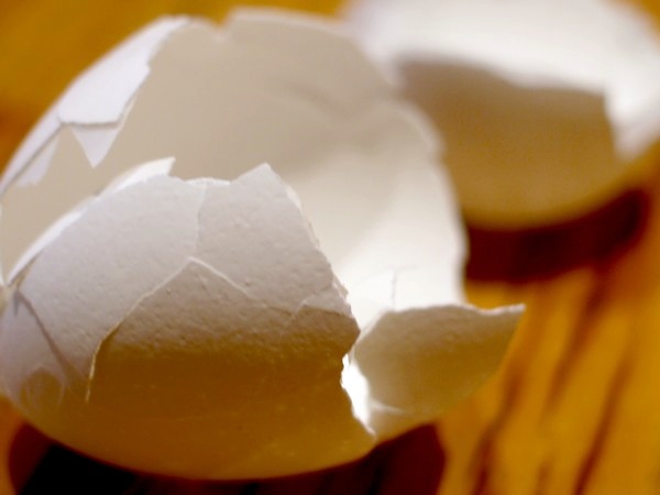 パパンのパンと細かく周囲にヒビ入れて、そっと手を添えおしぼりを軽く絞るようにひねるとスルンと剥けていく。