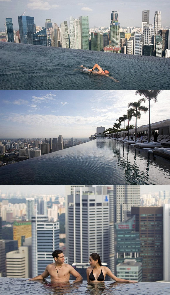 プールに入ると水平線がそのまま空に飲み込まれていく「Infinity Pool」っていう構造のコレ。