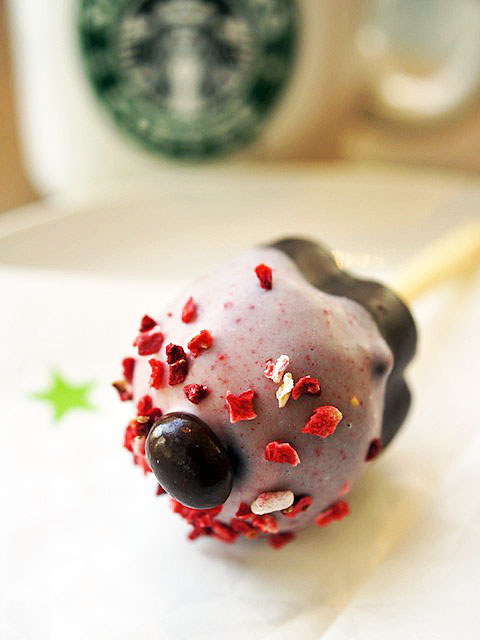 ケーキポップのストロベリーチーズケーキをお供にしました。