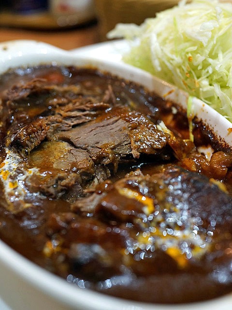 ドッシリ分厚い牛肉が形そのまま、やわらくなるまで煮こまれてスプーンの背中で押すとクチャっと潰れる。