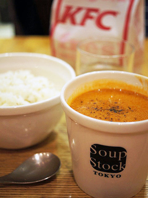それでスープストックでスープとご飯のセットをたのんで一緒に食べよう。