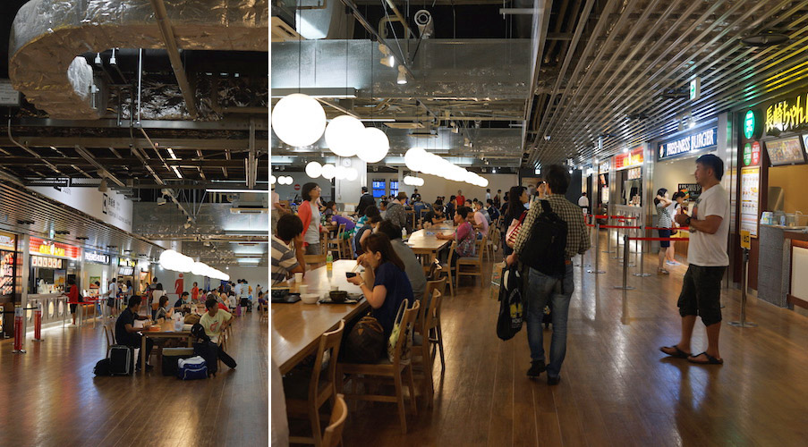 フードコートを兼ねた待合ラウンジは、無印良品の家具が置かれて、機能的なんだけどあったかく、何より寝そべるコトを促すラウンジチェアーがたくさん並ぶ。