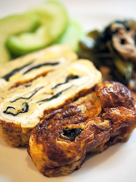 油揚げと一緒に出汁と醤油で煮たモノ。