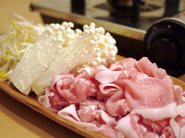 魚粉のうま味がドッシリとした醤油のスープで豚ロース肉をしゃぶしゃぶすると、なんだかちょっとアジアの料理な味わいとなる。