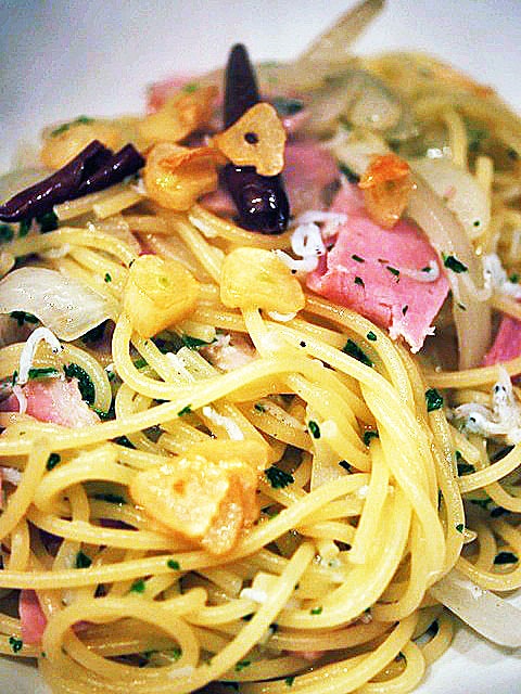 サッパリ味にしてやろう…、ってペペロンチーノ風を目指して味つくる。