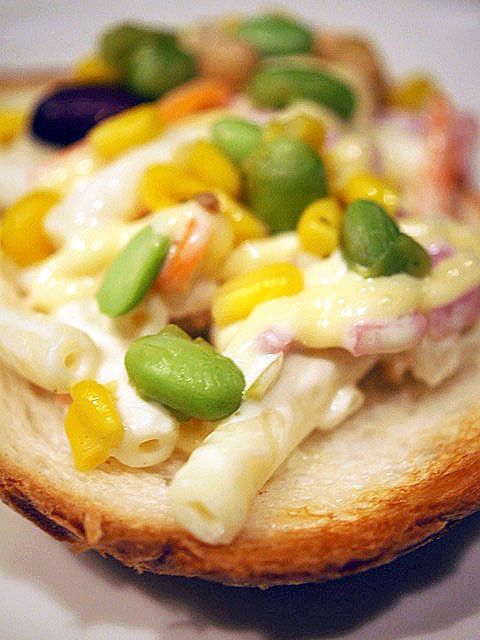 そこにバターをタップリ塗って、マカロニサラダをタップリのっける。