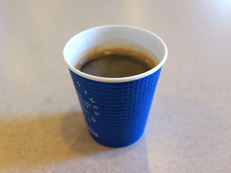 セルフサービスのコーヒーマシンの横には紙のカップがズラリ。