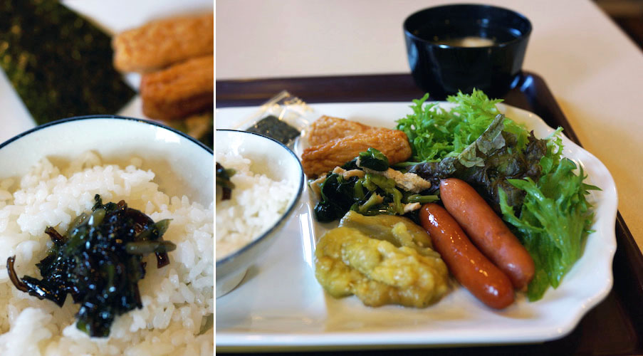 芥子菜と高菜を和えた漬物や、ウィンナさんに焼きなす、おひたし。