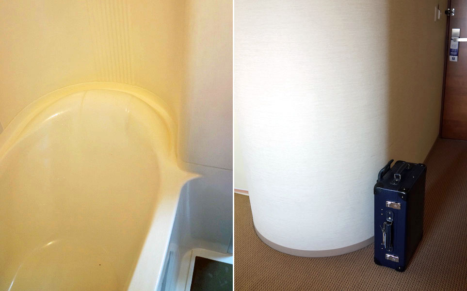 大きな部屋で、しかもバスルームの壁がアール状に突き出している。オモシロいデザイン処理だなぁ…、と思ってお風呂に入るとバスタブの頭の部分を覆い囲むようにできてた壁だった。