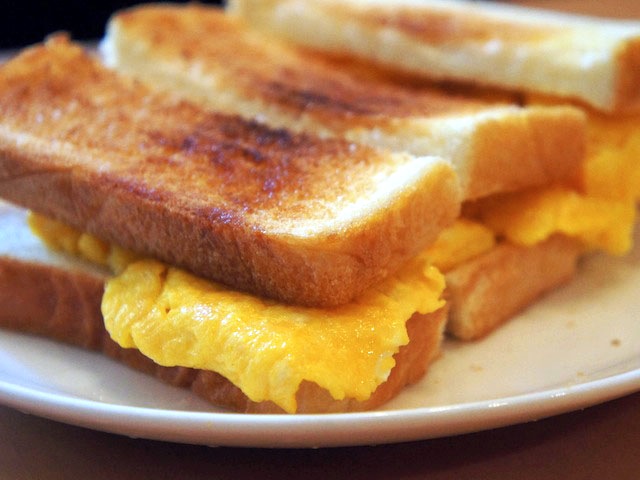 カサッと焦げたパンの乾いた食感と、フンワリとした玉子のやさしい味わいのコントラストがオゴチソウ。
