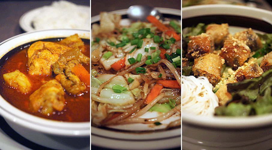 ふんわかとした蒸し素麺の食感と、バリバリとした揚げ春巻きにヌクマム、スイートチリがからんで一口ごとに食欲が湧く…、お腹もキチンとスタンバイ。