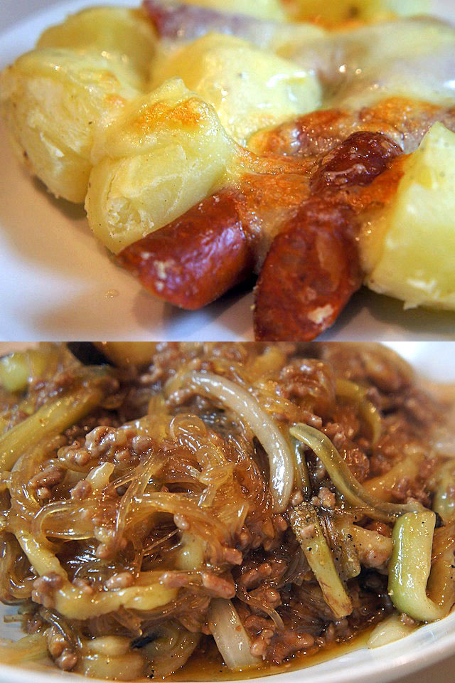 芋とチーズとソーセージがからにじんだ脂がラクレットチーズを焼いてお芋に乗せる料理にちょっと似ている。