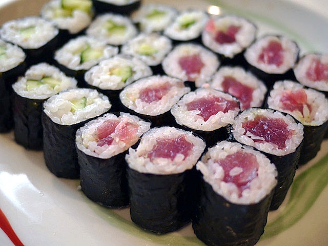巻いたまんまの一本モノを買ってきて、包丁でスパッと切ってキレイに並べる。