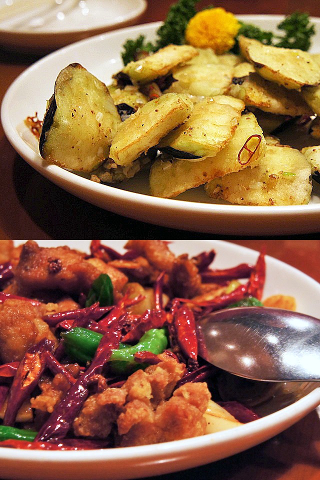 ガッシリ揚げた鶏肉を唐辛子と一緒に再び鍋でいためた四川料理の代表的なる一品で、たしかに辛い。