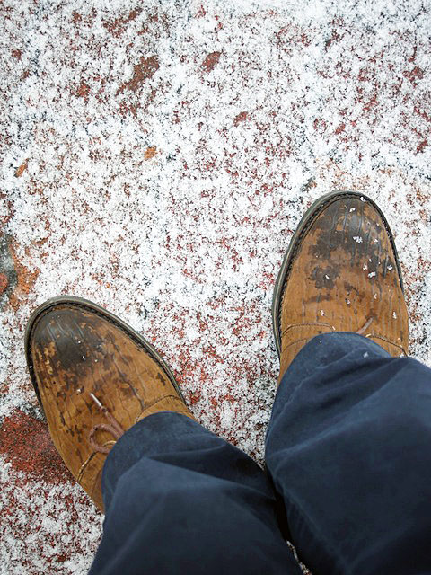 靴でオシャレをして象アザラシの革のゴム底の靴を選んで履いた。
