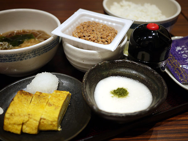 卵焼きに納豆、とろろに海苔に蕎麦。
