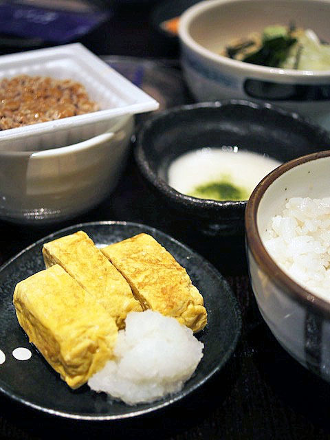 玉子焼きに納豆、山芋とろろがついた朝定食をたのんで食べる。