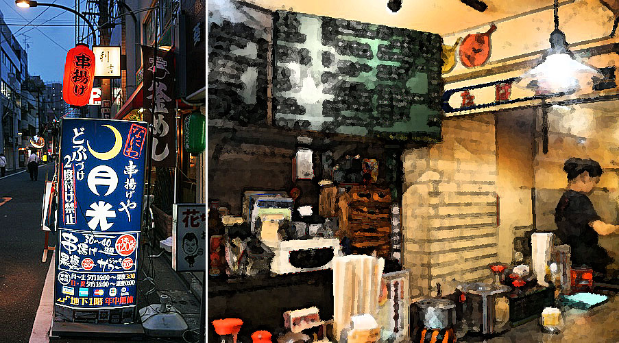 そして夜…、新宿御苑の近所でかるく串かつつまむ。