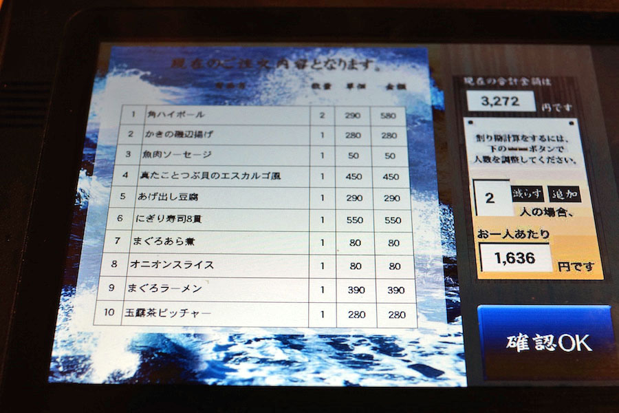 オーダー用のタブレットの計算ボタンを押すと、こんな値段でござる。