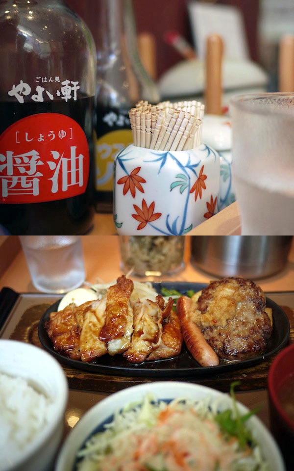 一緒にマヨネーズが鉄板の横にまるで小山をなすようにタップリ添えられていて、それをつけて食べるとおやまぁなんと、あのチキン南蛮の味になる。