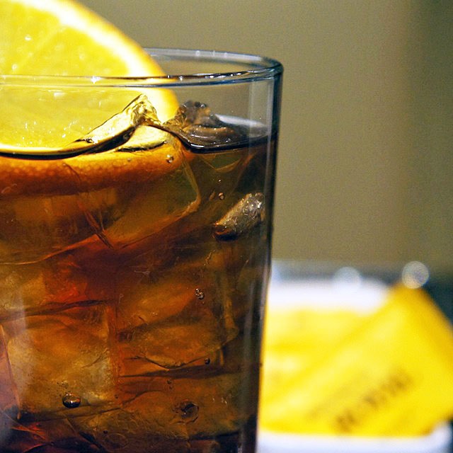 オレンジスライスが載ってるのでは?確か他のロイヤルホストではレモンスライス(もちろんドリンクバー)だったような。