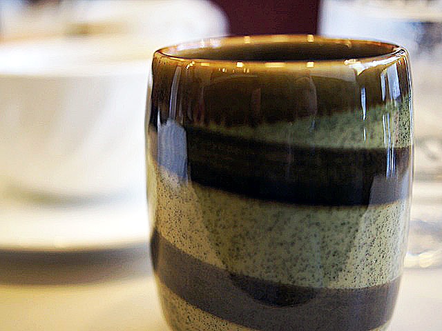 真ん中の折り目のところがホチキスで留められ用意されている日経新聞を読んでユックリしていたら、「ごゆっくり」って言葉と一緒にお茶がストンとやってくる。