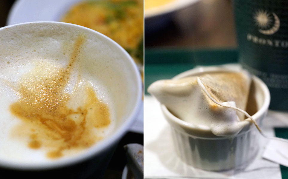 コーヒー、紅茶、エビのリゾット、ヨーグルト