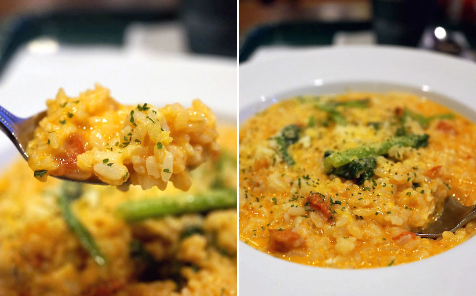 それにしてもリゾットをスプーンで食べるか、フォークで食べるか…、ちょっとココが迷いどこ。