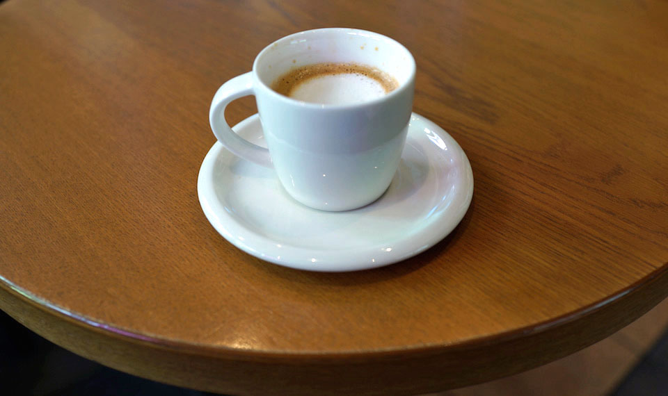 ちょっとづつ舐めるように飲むと甘みが静かに口を満たしてくれる。酸味控えめなスタバ的なるエスプレッソの旨みをじっくり味わえるんだけど、グビッと一気に喉に流し込む。すると苦味のアタックが強烈で、他のコトに気持ちをやってる暇もなく、バチンと頭が目覚めて痛快。