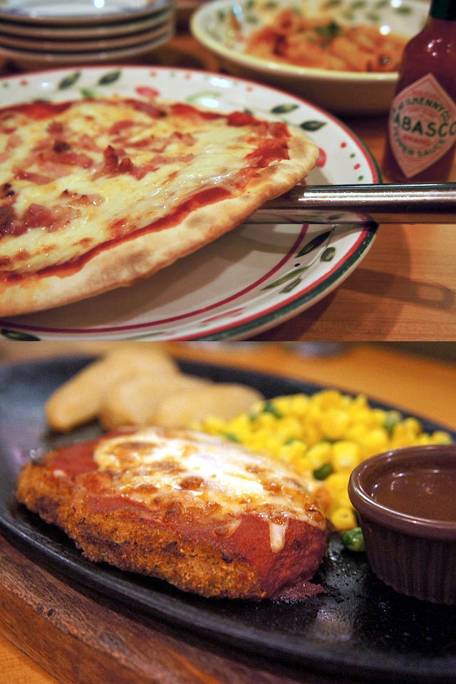例えばこれを「ベーコンのピザ」って言えばまるでファミリーレストランのピザになる。