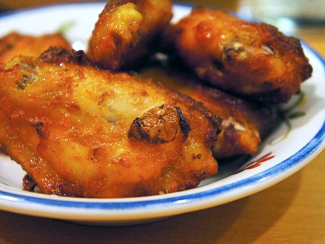 ちょうど、ケンタッキーフライドチキンのフライドチキンのようにフックラ、油の中で煮上がるように出来上がっている鶏の唐揚げ。