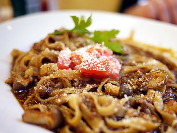 きな粉豚を使ったラグーのタリアッテレというもので、一口だけをもらって食べてみたけれど、まぁ、普通のミートソースの味がする。