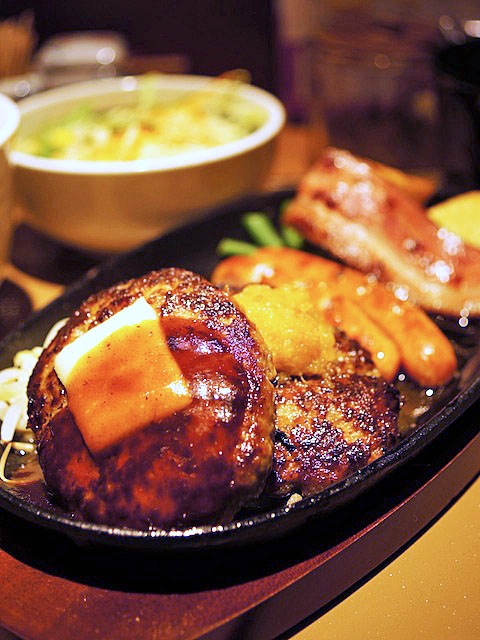 鉄板がジュウジュウしながらやってくるのに上がります。