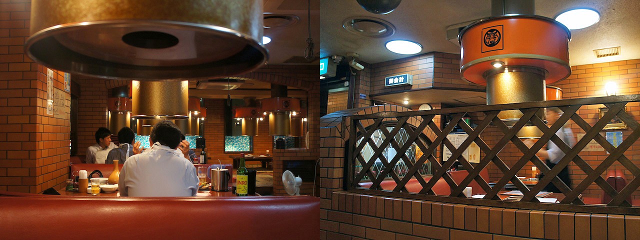 ダクトの上にお店のロゴが入ったカバーがかかってて、かつてチェーン店だった頃の面影残してオモシロイ。
