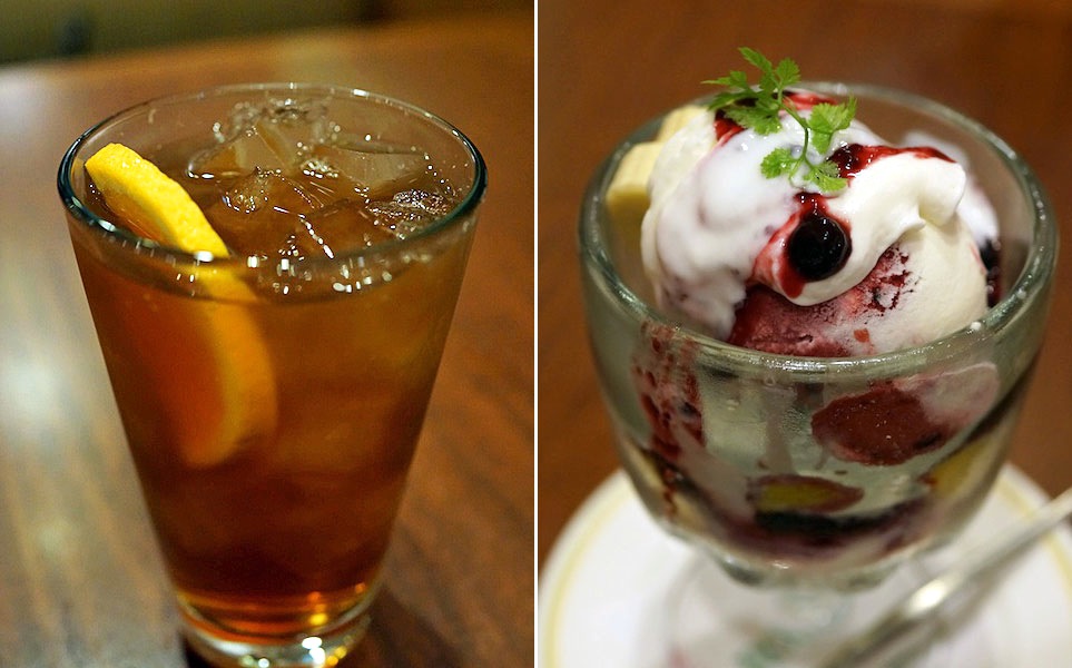喉のお供はトロピカルアイスティー…、なんとこれがおかわり自由になっていたのもウレシイもてなし。これでスタッフの数がもっと充実したら、かつてのロイヤルホストのようにキラキラ輝く店になってくれるのになぁ…、と思ったりした。