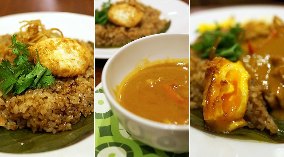 夏のフェアー商品の、カレーの中から「ナシゴレンとチキンクリームカレーのセット」…、セット言うよりナシゴレンにカレーをかけて味わう提案。