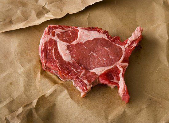 ステーキにしておいしい肉をナイフ一つで削り出し、それでアメリカ合衆国の形にしたモノ。
