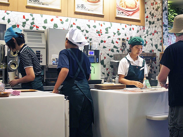3人ほどが厨房の中にカウンターで働いている。