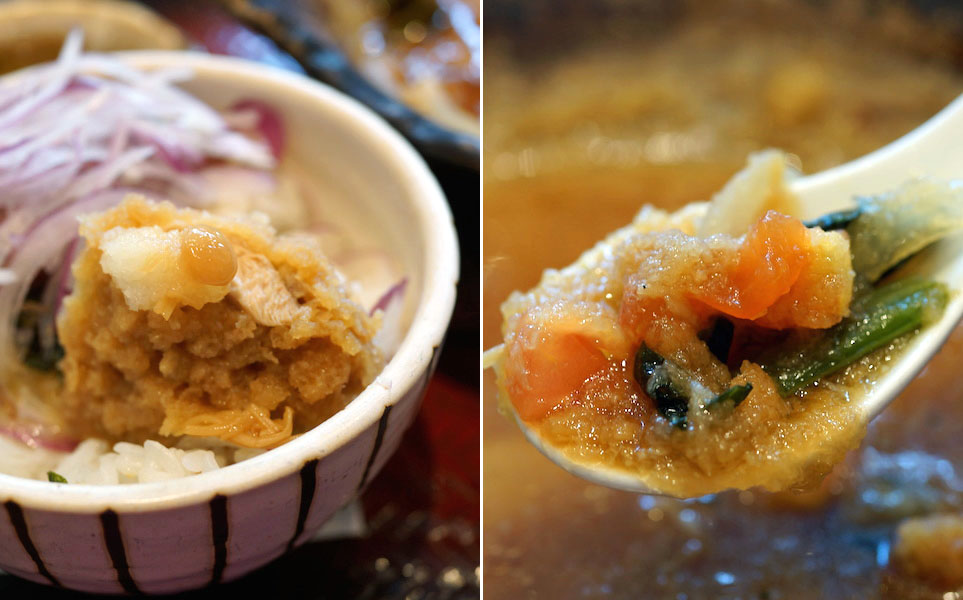なにより油混じりの出汁をタップリ含んだ大根おろしのおいしいコト。ご飯がいくらだって進むおいしさ。お腹がたのしくみたされる。