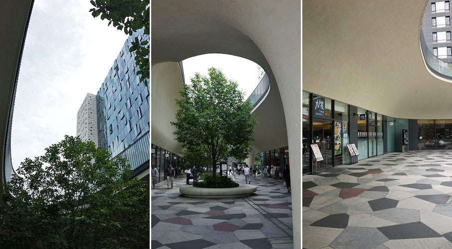 東新宿の駅に直結した再開発ビル。地下を繰り抜きサンクンガーデン風にして、そこに飲食テナントを貼り付けるという、かなり凝った造りの施設。