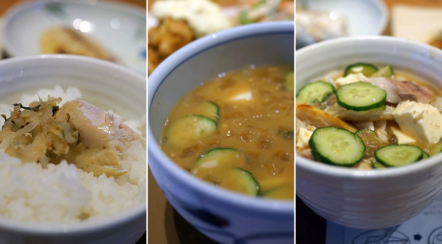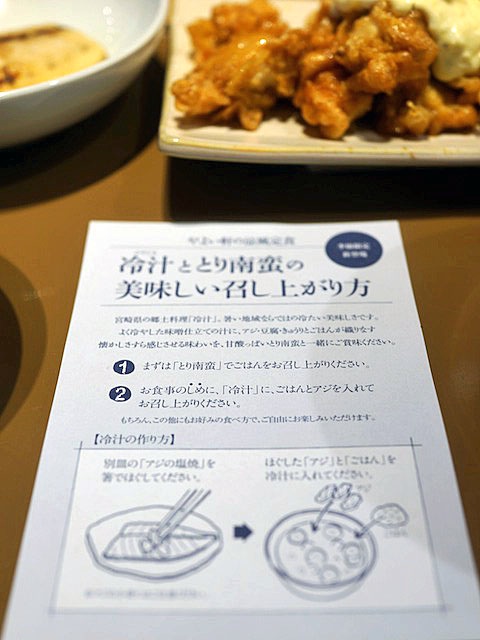 曰く…、まずチキン南蛮でご飯を食べて、おかわりご飯をほぐした塩サバと一緒に冷汁の中に入れて食べてくださいませな…、と。