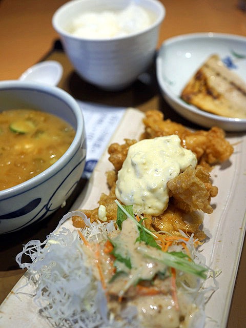 そしてご飯をお茶碗一杯、チキン南蛮と鯖と冷や汁おかずに食べる。