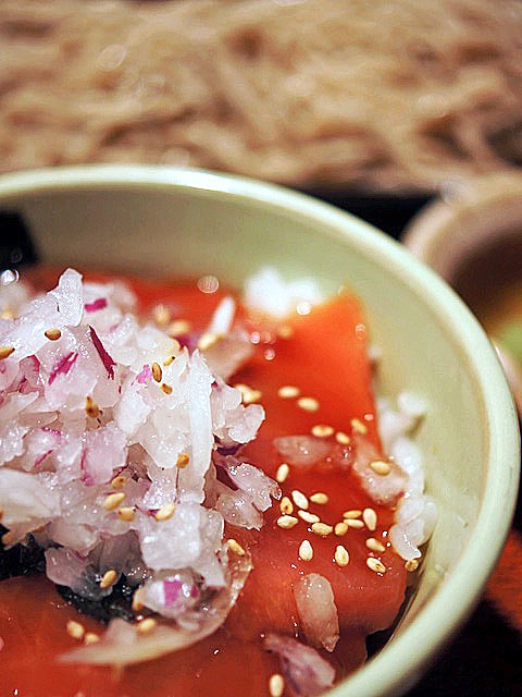 普通のネギじゃなくて、刻んだ赤たまねぎがのっかっているのがオモシロイとこ。