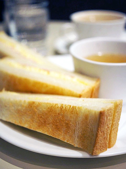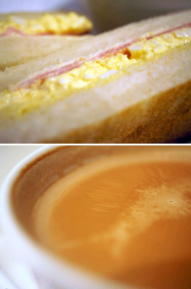 キレイにトーストされたパンで玉子サラダとハムを挟んだ今日のメイン。